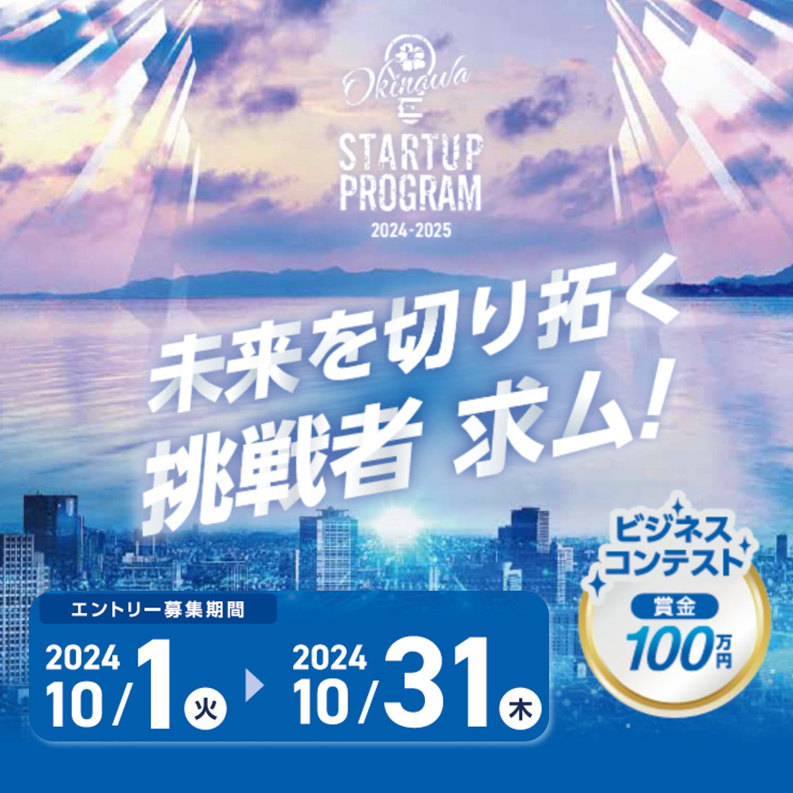 募集期間は10月1日から10月31日まで。県内をはじめ、全国から沖縄の発展に資するスタートアップを募集します。選考会を経て、12月上旬に採択企業を公表します。