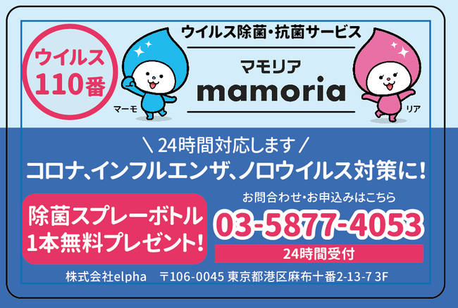 ウイルス除菌・抗菌サービス「マモリア」が無料キャンペーンを実施