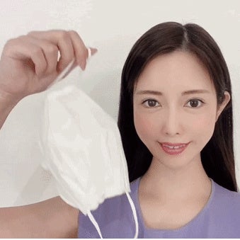 不織布マスクのひだの部分をひっぱり、マスクシートが隠れるように装着します