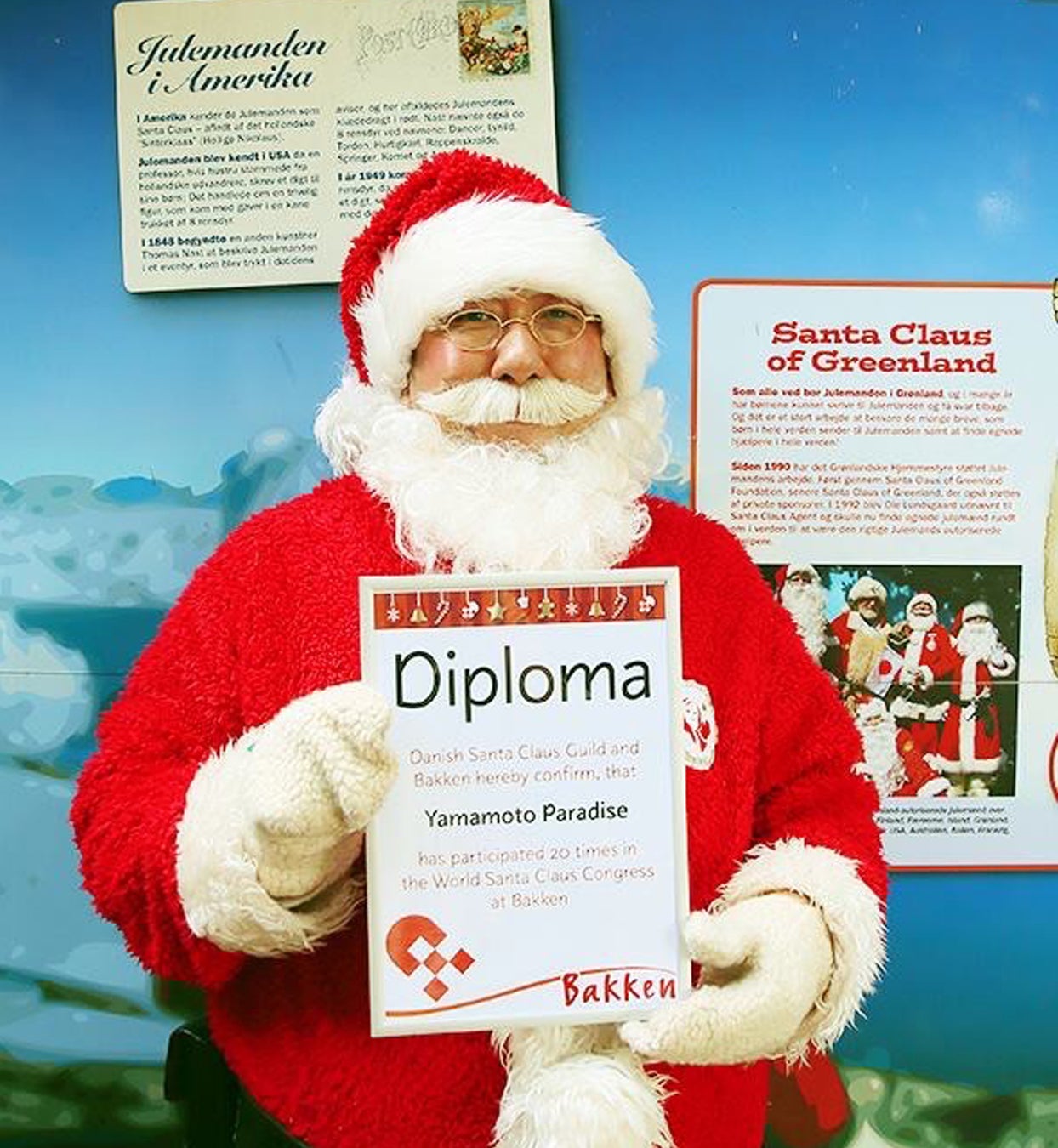1962年、北海道札幌市生まれ。1998年グリーンランド国際サンタクロース協会より、アジア初の公認サンタクロースとして任命。音楽ユニット「東京パノラママンボボーイズ」としても活動。NHK おかあさんといっしょ 「たこやきなんぼマンボ」の作曲・演奏を手がける。趣味はマン盆栽、特技は餃子つくり。ANA機内誌 翼の王国「パラダイス山元の快適な空だけの旅」でもイラストレーター ソリマチアキラと連載中。