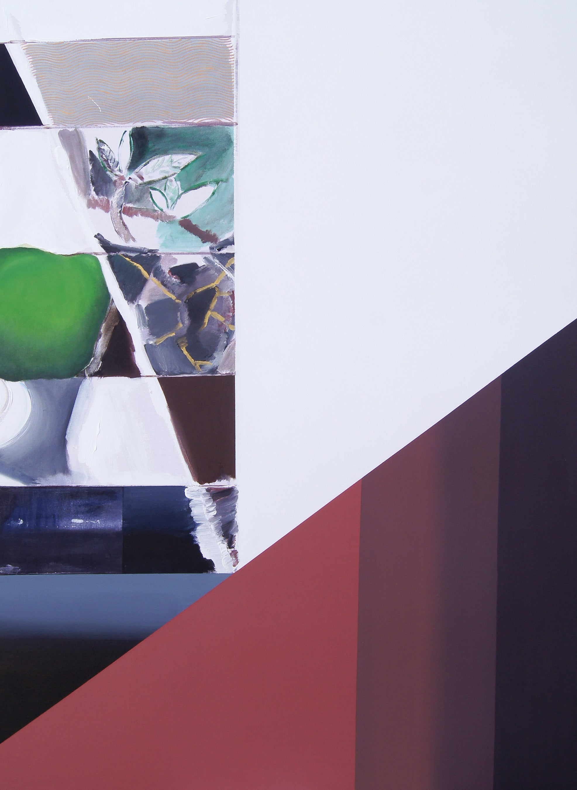 「さまざまな要素をもった別々の絵画を、ひとつの絵画という うつわ に仕立てる」というコンセプトのもと、継続して発表しているシリーズのひとつとして制作した作品。