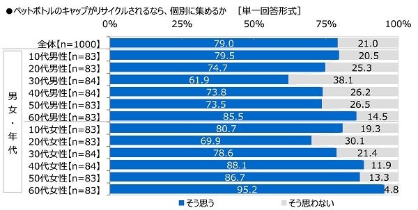 - ペットボトルのキャップやラベルがリサイクルされるなら、個別に集める? 「キャップを個別に集める」は79.0%、「ラベルを個別に集める」は71.2%が同意