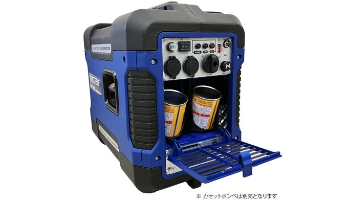 操作や燃料管理が容易なカセットガス(ボンベ)発電機は、アウトドアレジャーや防災用品として人気がありますが定格出力が低いことがネックとなっていました。