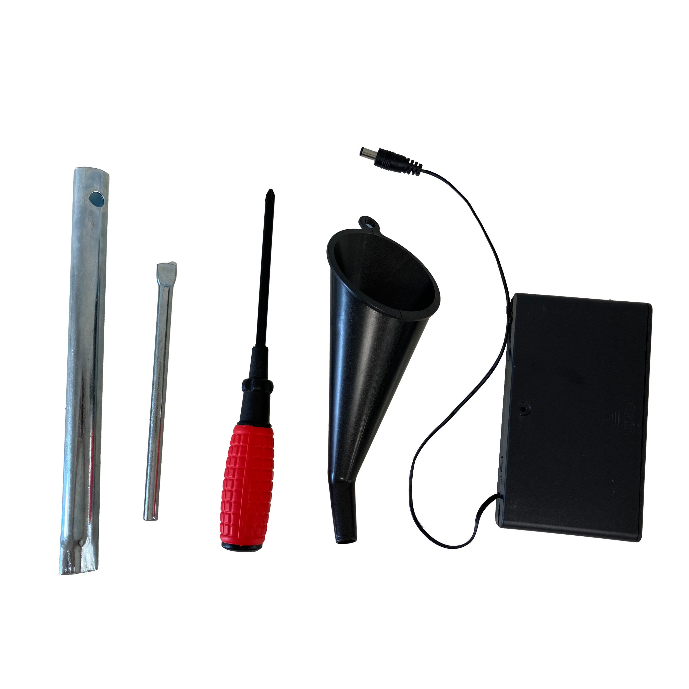 付属品:スパークプラグレンチ×1、ハンドルバー×1、オイル給油用ファンネル×1、プラスドライバー×1、バッテリーヒーター×1