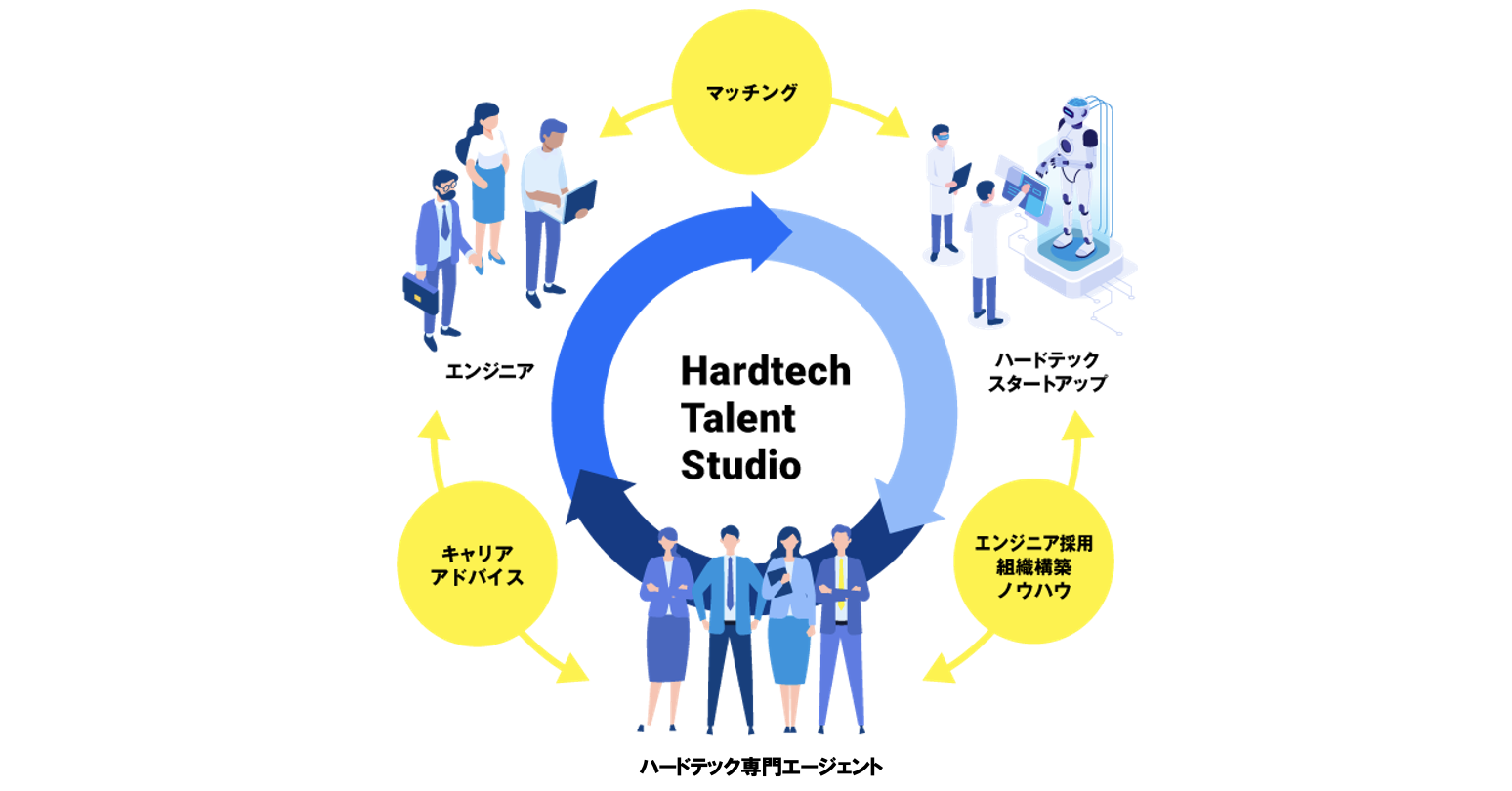そこで、実際に大企業とスタートアップで製品開発を経験してきたエージェントや、製造業向けのエンジニア支援を長年経験してきたエージェントがエンジニアのポテンシャルを正しく理解し、活躍できるスタートアップへの挑戦を支援するサービスと、ハードテックスタートアップの技術や開発要件を理解し、必要なエンジニア要件の定義や人材紹介を行うサービスとして、「Hardtech Talent Studio」をリリースいたします。
