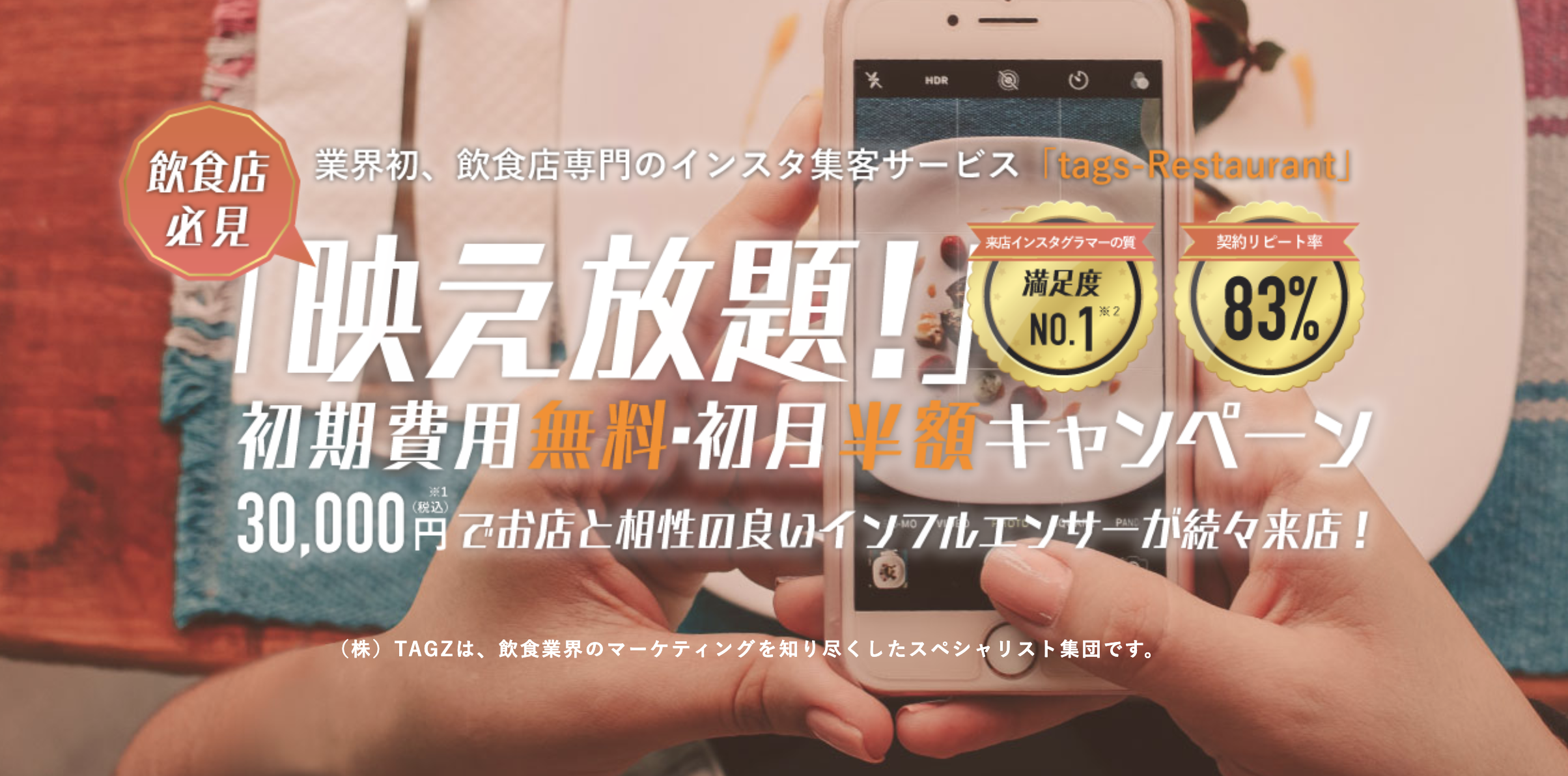インフルエンサーを活用した飲食店専門の集客サービス『tags-Restaurant』が、サブスクリプションの「映え放題」プランを初期費用無料、初月半額に!