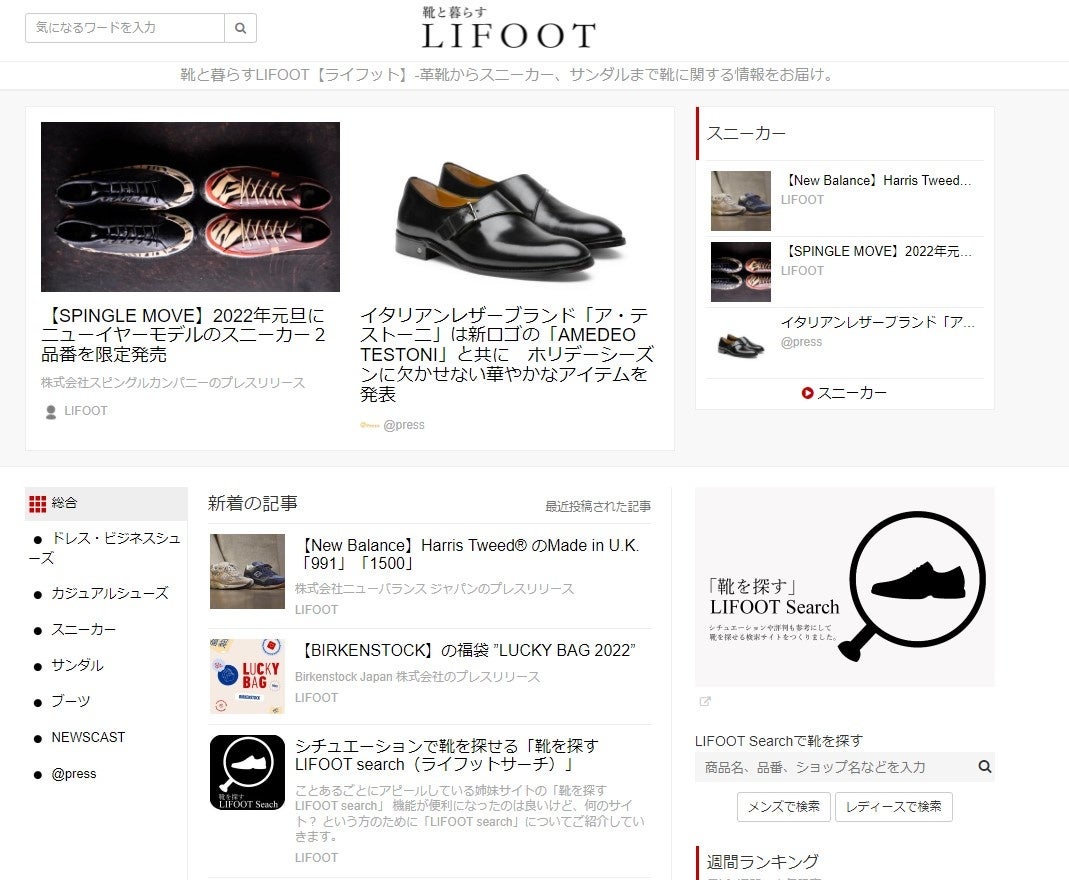 靴に関する情報をお届けする「ライフット」がアップデート