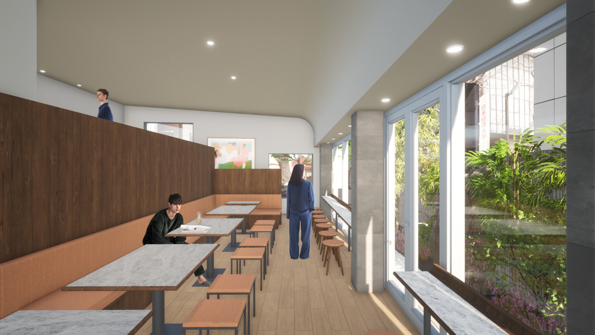 1階にはコーワキングスペースと時間貸の会議室を設置。またミシュラン2つ星レストラン「精進料理 醍醐」四代目 野村祐介氏監修による身体を労うことをテーマにしたヴィーガンフードを提供します。消化に優れ、眠くなりにくいため、ONのパフォーマンスを低下させません。