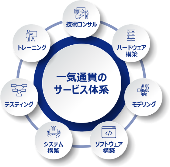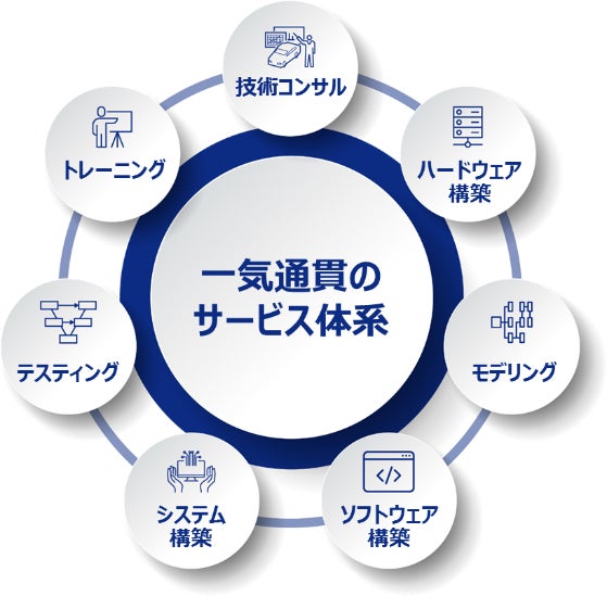 また、エンジニアリングサービスでは、当社のスペシャリストがシミュレーション環境の導入から活用、お客様に代わって評価・解析を行うテスティングサービスまで、幅広くサポートし、お客様の商品開発の加速を支援いたします。