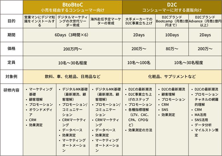 近年、世の中の普通が劇的に変化する中においてメーカー各社は、自社に必要なマーケティングのやり方の理解と、業態ごとに異なるマーケティングの業務範囲に対応できていない現状があります。そこで私たちは「日本メーカーの競争力を底上げする」をキーテーマに掲げ、PMAを立ち上げることとしました。これまで弊社で培ったノウハウ、トレンドをもとにプログラムを構築し、次世代リーダーの育成のための研修コンテンツを提供します。
