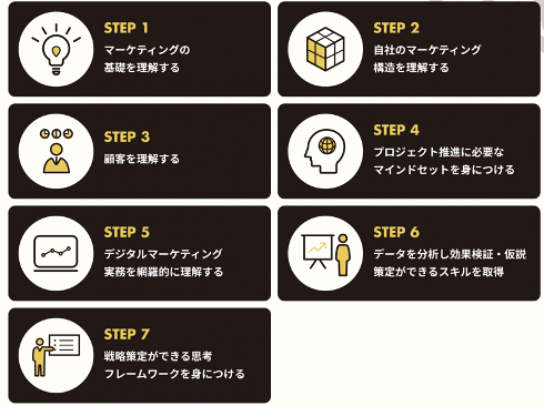 ●PMAで提供するマーケター育成ステップ