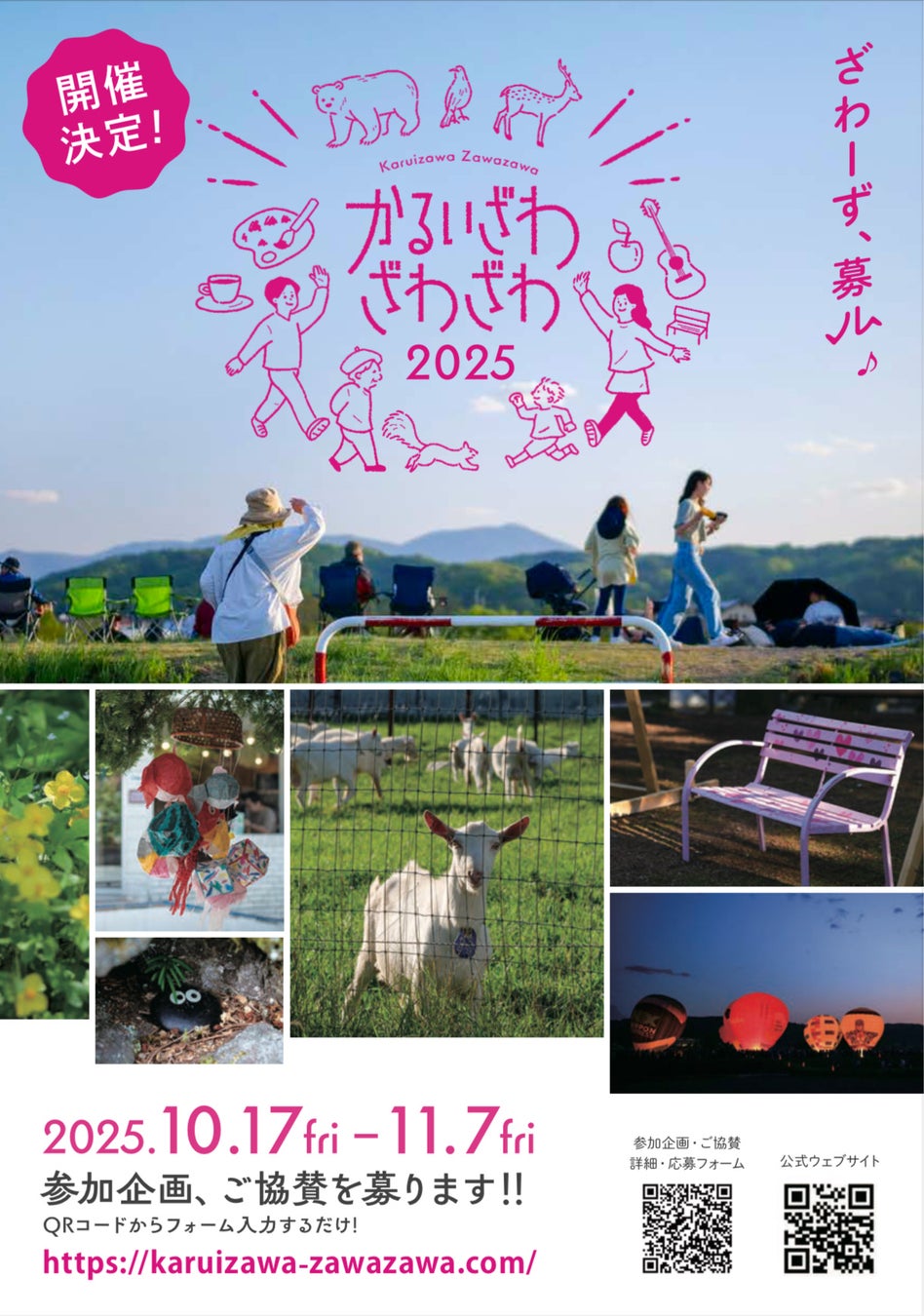 開催期間中は、軽井沢町全域+周辺市町で展示、コンサート、ワークショップ等が同時多発的に繰り広げられます。参加企画者・協賛協力者=“ざわーず”、わたしたちそれぞれが交流・協力できる場をつくっていきたいと考え、プロデュース部隊となる実行委員会を発足しています。「こんなことをしたい」「こうだったらいいなぁ」も気軽にお聞かせください。人と人を繋ぎ実現のお手伝いをさせていただきます。