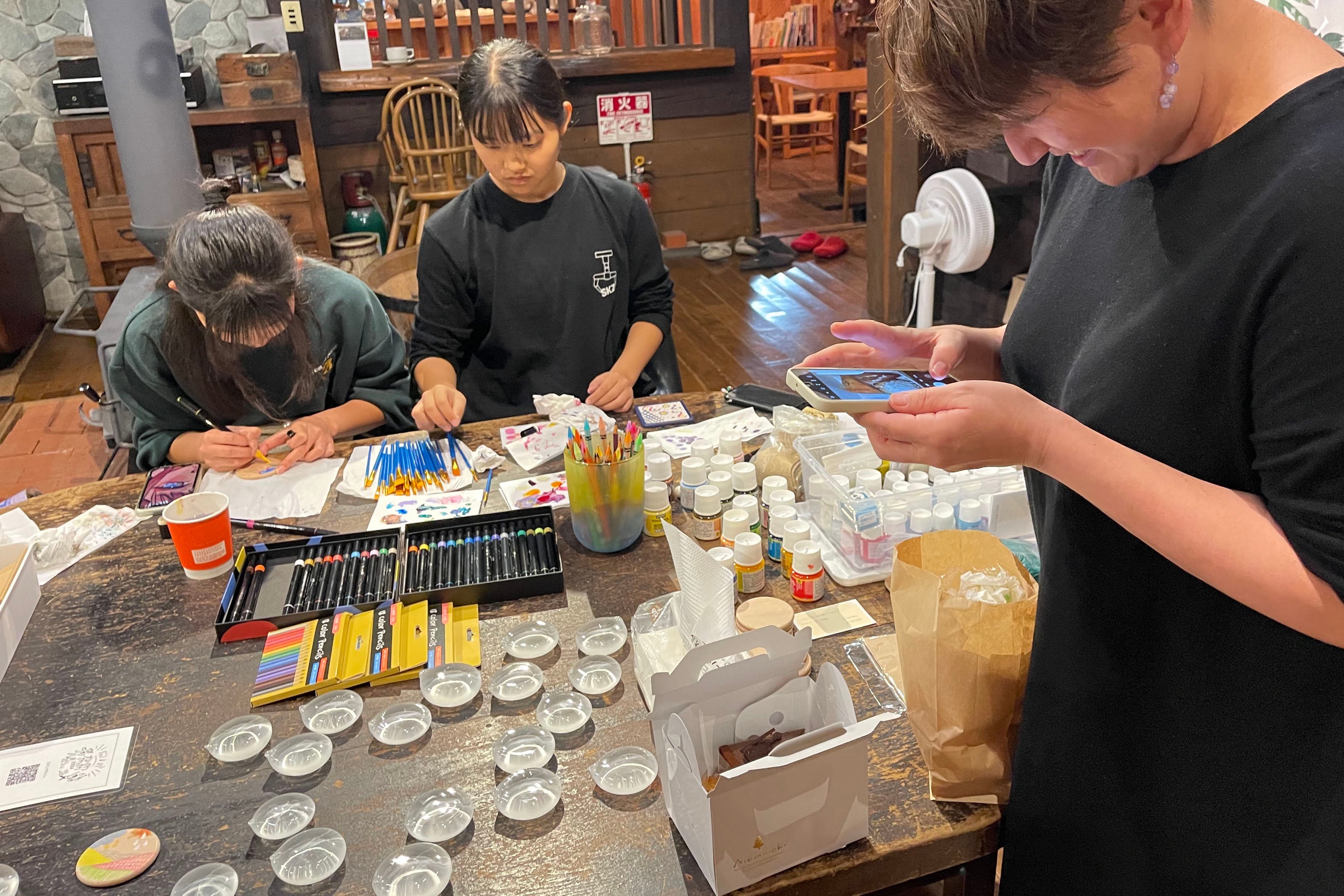 2024年8月に開催された「こどものまち軽井沢」。3年目にして、町内の小中学生260名(5日間のべ857名)が参加し、いろいろなしごとや作品が生み出されました。それらの展示とともに、軽井沢高校、軽井沢中学校からも参加。すべての作品展示レイアウトを軽井沢高校の美術担当教師・大森先生が担当。