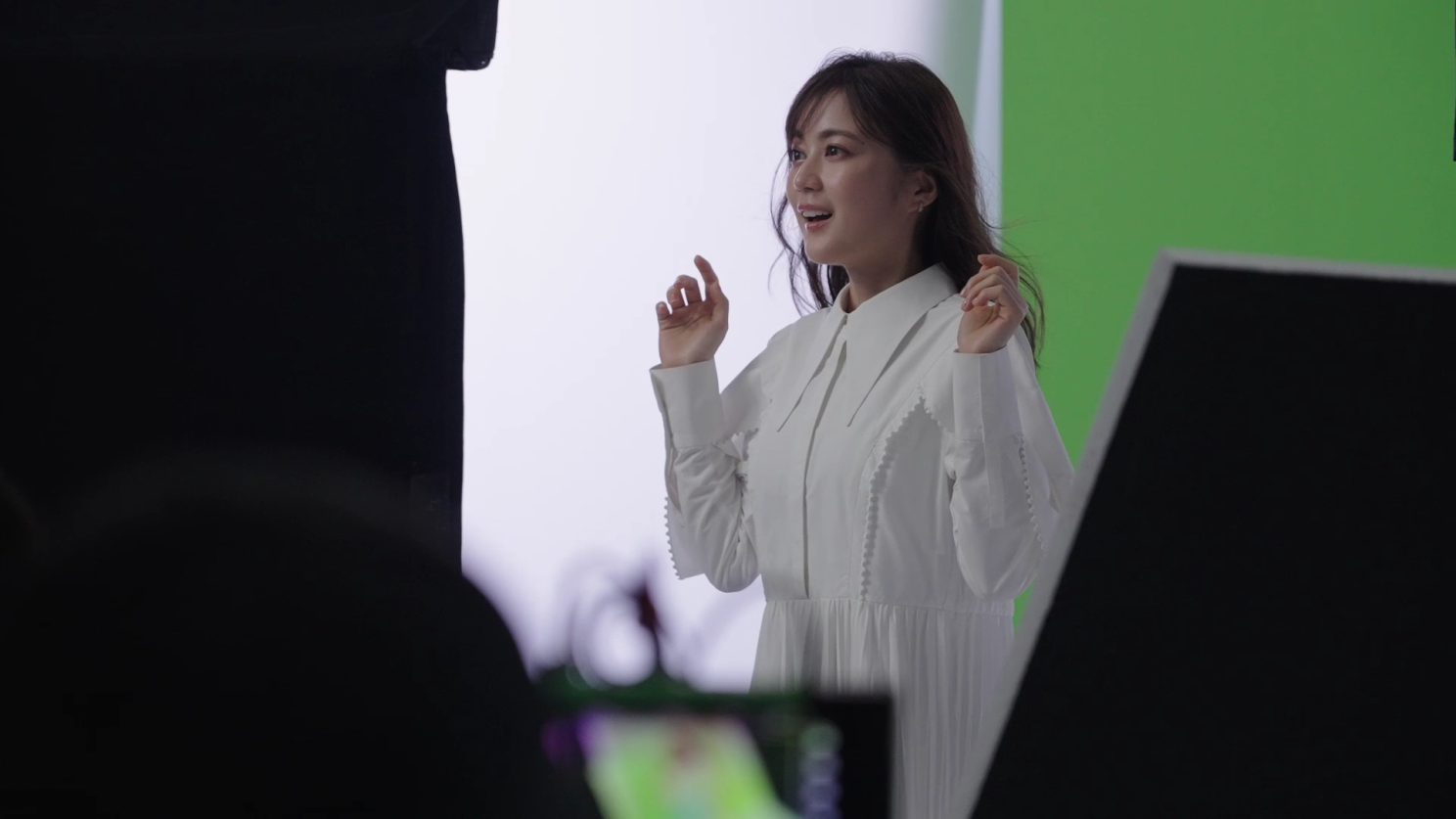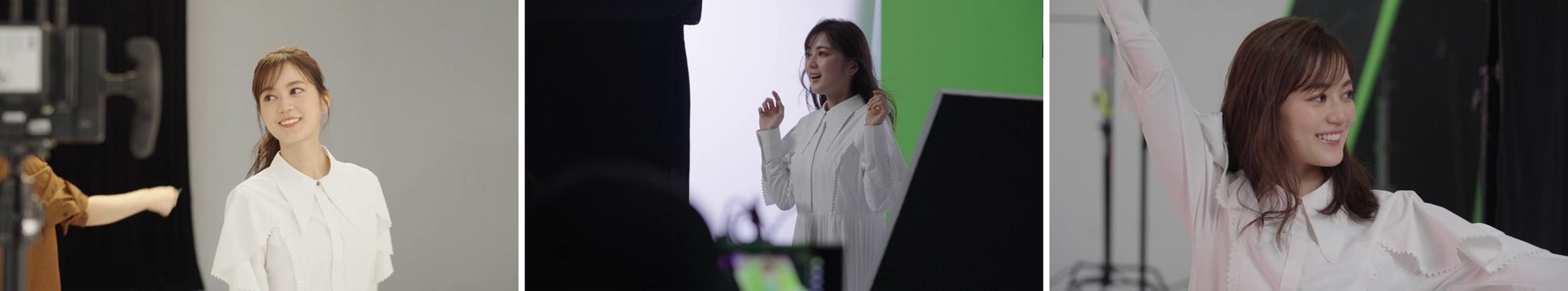 今日は、全部白い背景のスタジオで、私も白い衣装で、白に囲まれながら撮影をしたんですけど、ここからCG合成などがあって、あがりはとってもカラフルになるということで、いろんな色をイメージしながら、表情もいろんな色が出るといいなと思いながら、楽しんで撮影していました。