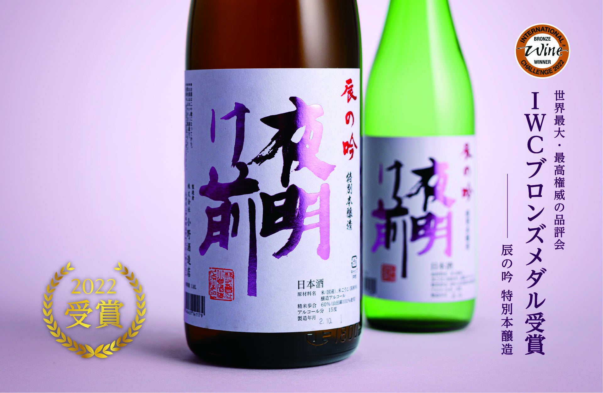 また、IWC「純米大吟醸酒の部」にて「夜明け前 純米大吟醸」がシルバーメダルを受賞、「本醸造酒の部門」にて「特別本醸造 辰の吟」がブロンズメダルを受賞しました。