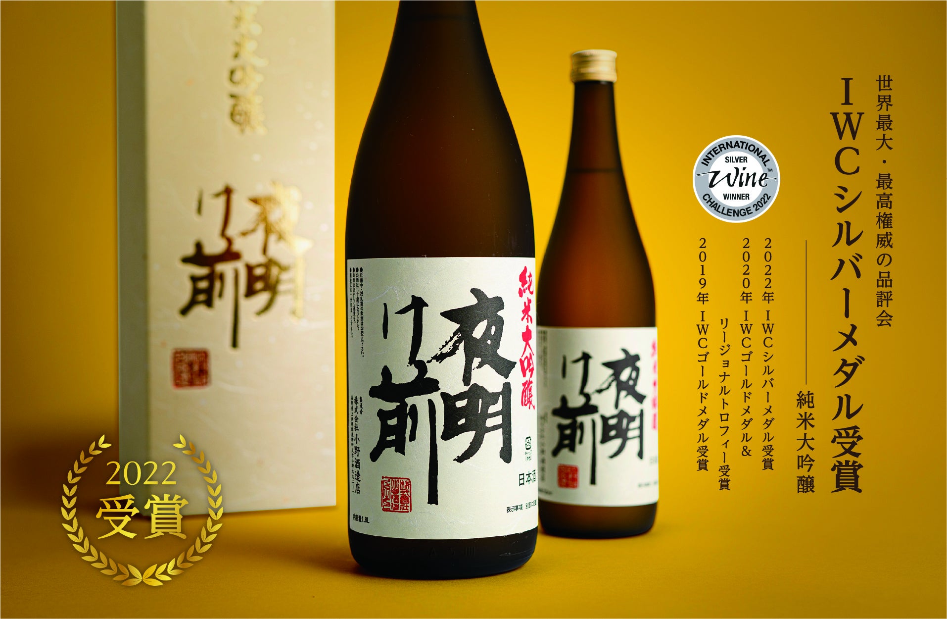 「夜明け前 大吟醸」が「世界と日本」の2冠を達成! IWC2022 SAKE部門のリージョナルトロフィーに続き全国新酒鑑評会金賞も受賞!