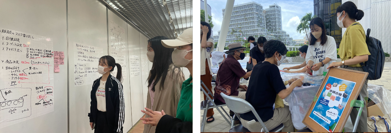4泊5日の短い期間の中で、高校生は、事業家や従業員の方、顧客に対してのヒアリングや街頭アンケートなどを重ねながら、若者向けのマーケティング施策やオンライン販売の強化施策など、事業家が抱えるリアルな経営課題に対して、自分達で施策を考え、最後は机上の空論ではなくアイデアの実行まで行いました。あるチームは、沖縄の若者観光客にむけたSNS戦略を策定し、さらに実際の投稿アイディアや会社のプロモーション動画を作成し、パートナー団体に引き継ぎました。実際にパートナー団体が「継続して取り組みたい/取り組める」と思えるよう、ただアイデアを「提案」するだけではなく、自ら手を動かし成果を残すことで、高校生自身も深く学びながら、パートナー企業に貢献することができました。