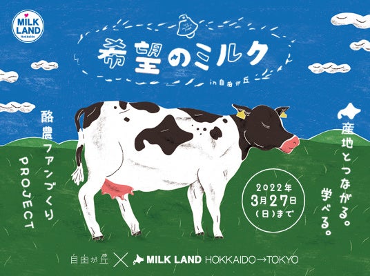 ホクレン農業協同組合連合会(本所:札幌市中央区北4条西1丁目3番地、代表理事会長:篠原 末治、以下:ホクレン)は、北海道産牛乳・乳製品の消費拡大を目的に酪農家の拠出で始まった運動「ミルクランド北海道」の一環として、日本の酪農を支えている北海道の重要性、北海道産牛乳・乳製品のおいしさを発信し、さらなる需要拡大を目指すべく『希望のミルクin自由が丘』を発足いたしました。