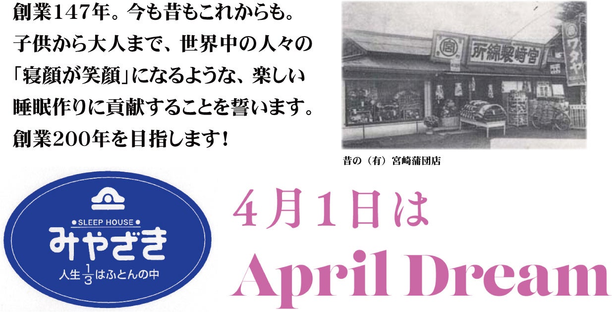 (有)宮崎蒲団店は子供から大人まで、世界中の人々の「寝顔が笑顔」になるような楽しい 睡眠作りに貢献することを誓います。