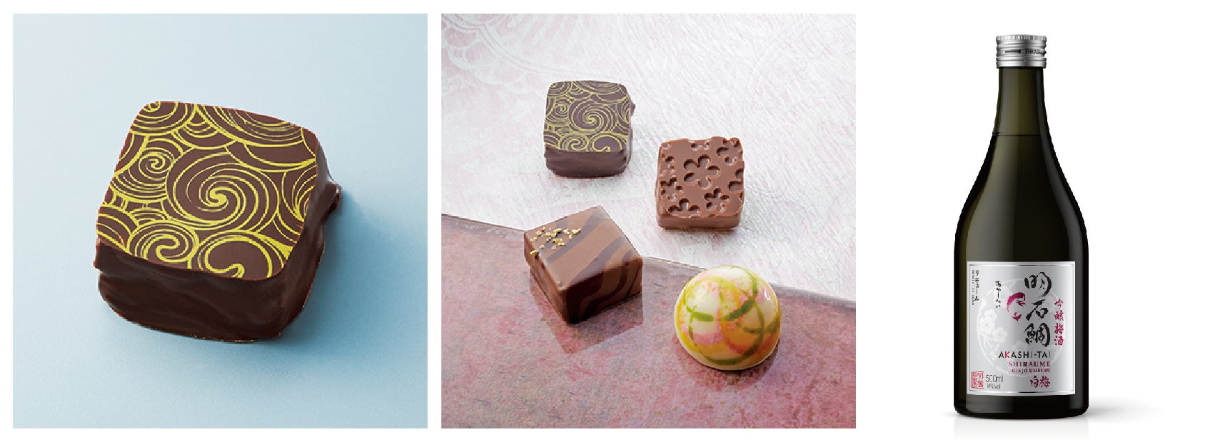 「明石鯛 吟醸梅酒白梅」は、世界の女性ワイン専門家が厳正審査する国際コンクール「フェミナリーズ世界ワインコンクール」で金賞受賞しており、バレンタインならではのショコラとのマリアージュにぴったりのお酒です。