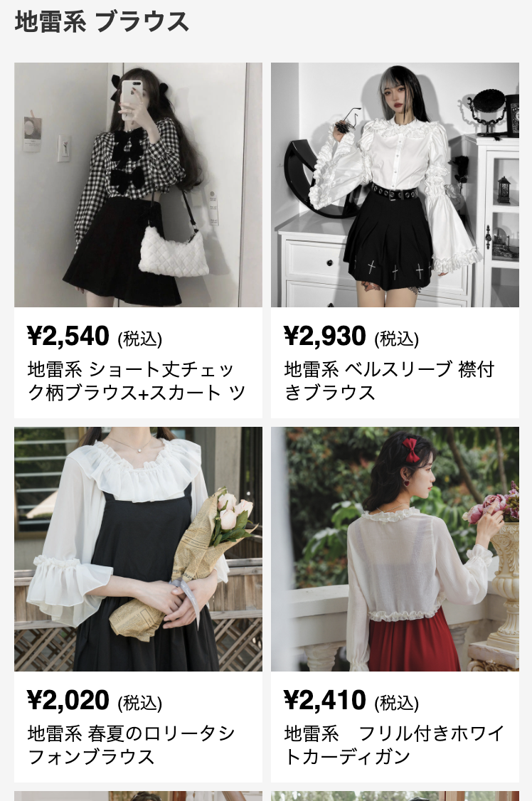 特徴2:様々なカテゴリの地雷系の服を掲載