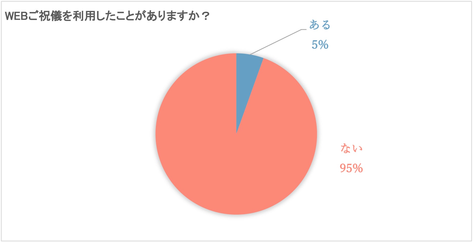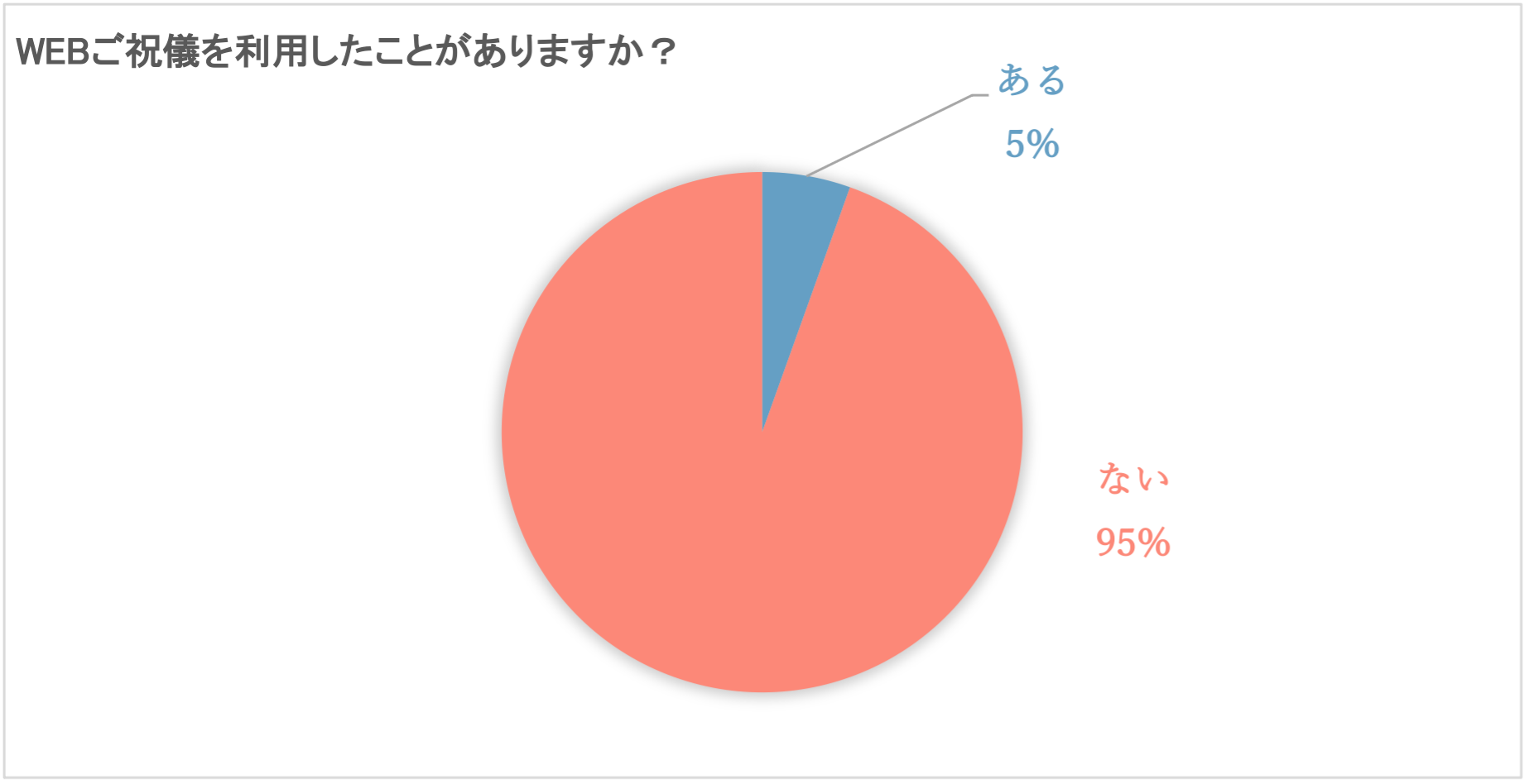 Q2. WEBご祝儀を利用したことがありますか?という質問では、WEBご祝儀のサービスを知っている方でも、実際に利用した事がある方は全体の約5%という結果になりました。