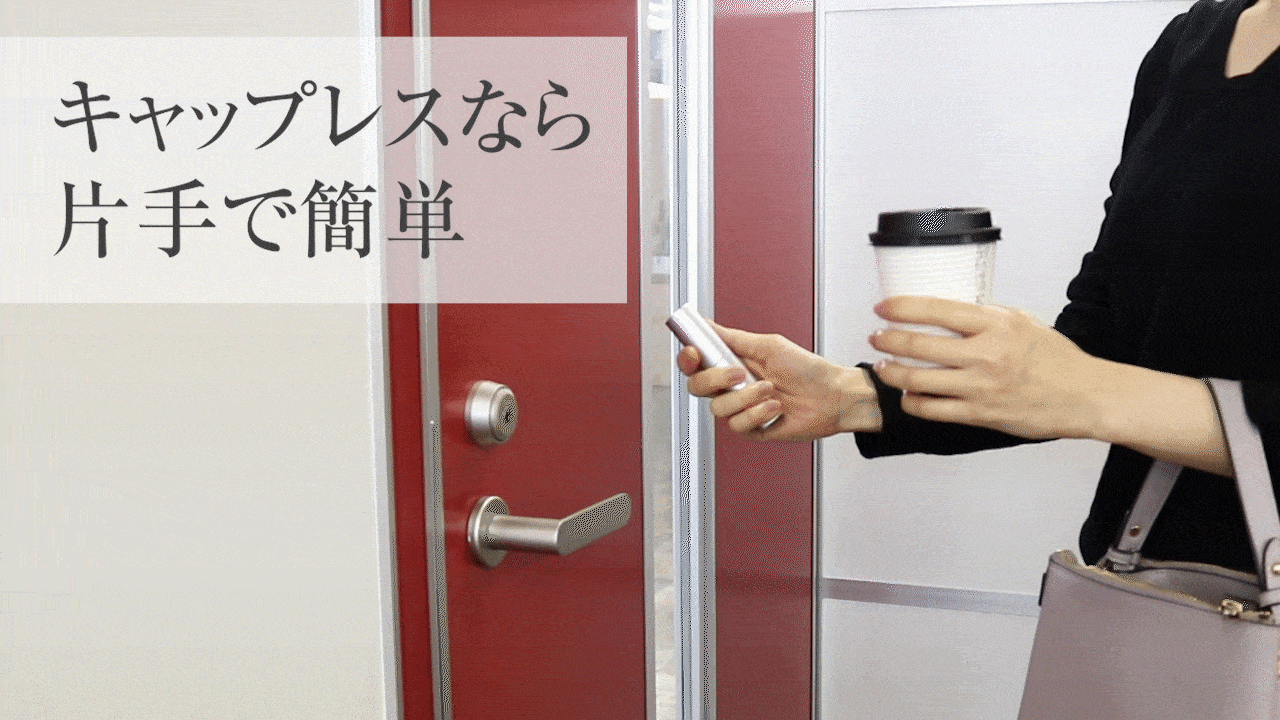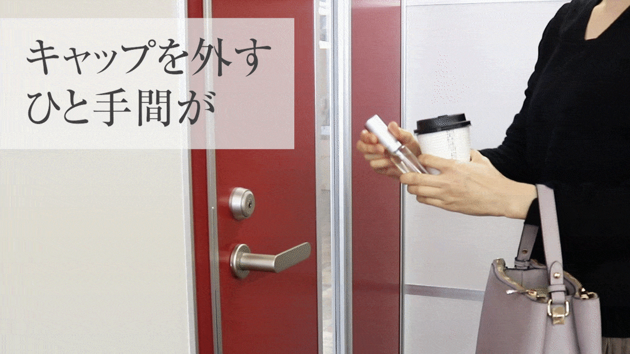 荷物で片手がふさがっている場合でも、キャップを外す手間が無いので、もう片方の手で簡単に除菌・消毒ができます。