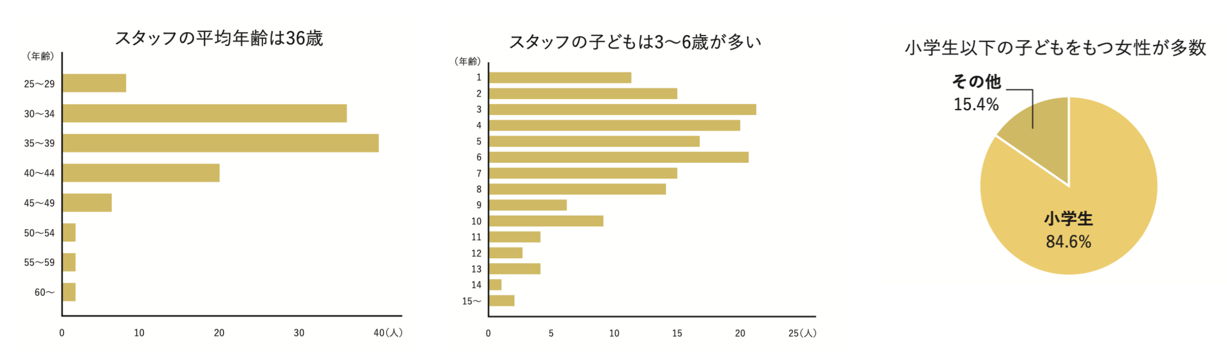 従業員の約130名中、9割以上が子育て中の女性です。子育てと仕事の両立をできる仕組みと環境を整えています。