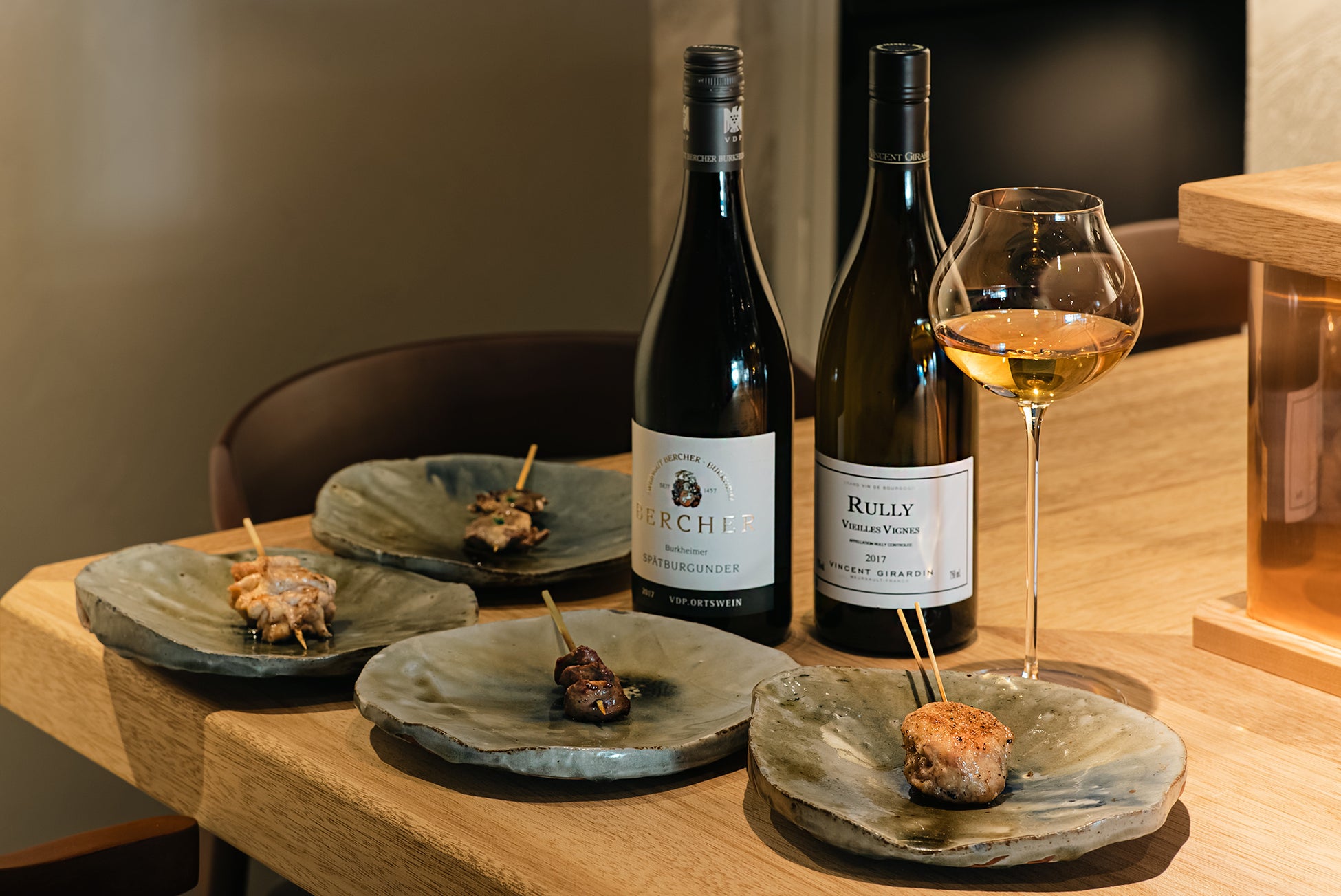 ドイツワインの元インポーターが店に立ち、焼鳥に合うワインをおすすめいたします。和食に合うスッキリと酸のある味わいが特徴で、鶏肉の脂もすっきりと洗い流してくれます。
