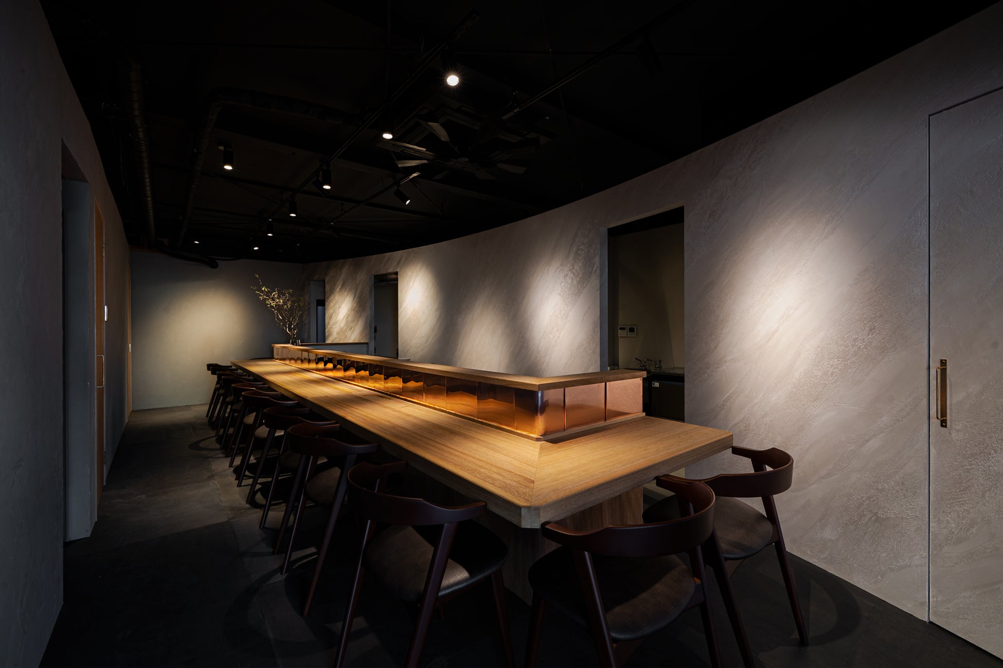 空間デザインは、様々な人気店や商業施設等の内装、インテリアを手がける「Muff」の一級建築士・今津氏が担当。「移ろい」をコンセプトに、凛とした表情と肩肘張らずにくつろげる落ち着いた雰囲気を両立させました。