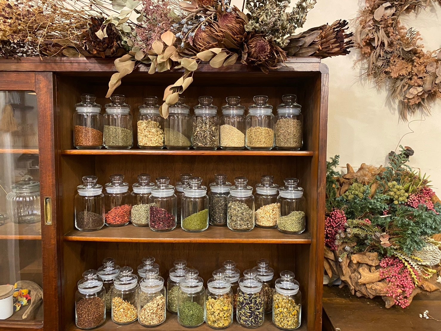 今回新しく、国内外の30種以上のハーブや薬膳素材を揃えた「薬草BAR」を新設。
