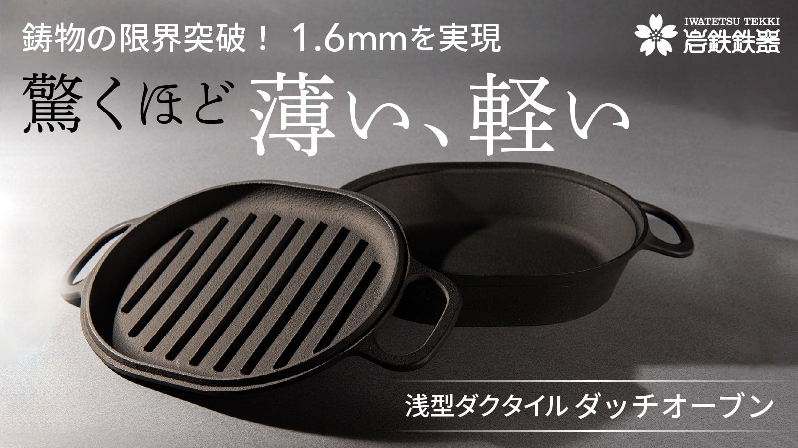 岩手製鉄株式会社 (本社:岩手県北上市、代表取締役:佐藤満義)は、お客さまの声から生まれたオーブンにも入る「浅型ダクタイルダッチオーブン」を応援購入サービス「Makuake」にて、3月1日より先行販売致します。