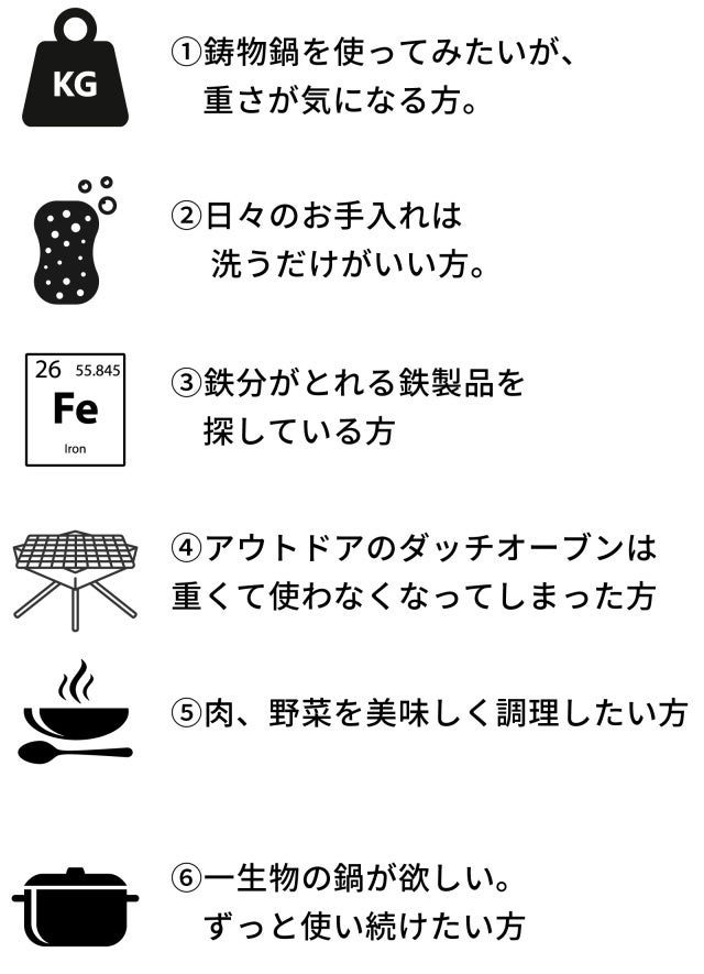 どうしても不足しがちな鉄分も、ダッチオーブンなら調理するたび自然に鉄分が補給できます。