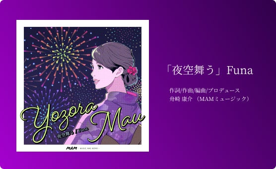 「片山津納涼花火まつり」のために書き下ろされたオリジナルソング「夜空舞う」三味線や琴など伝統的な和楽器と現代的なシンセサイザーのサウンドが融合されており、古き良き花火と先進的なドローンショーのコラボレーションをより一層引き立てます。