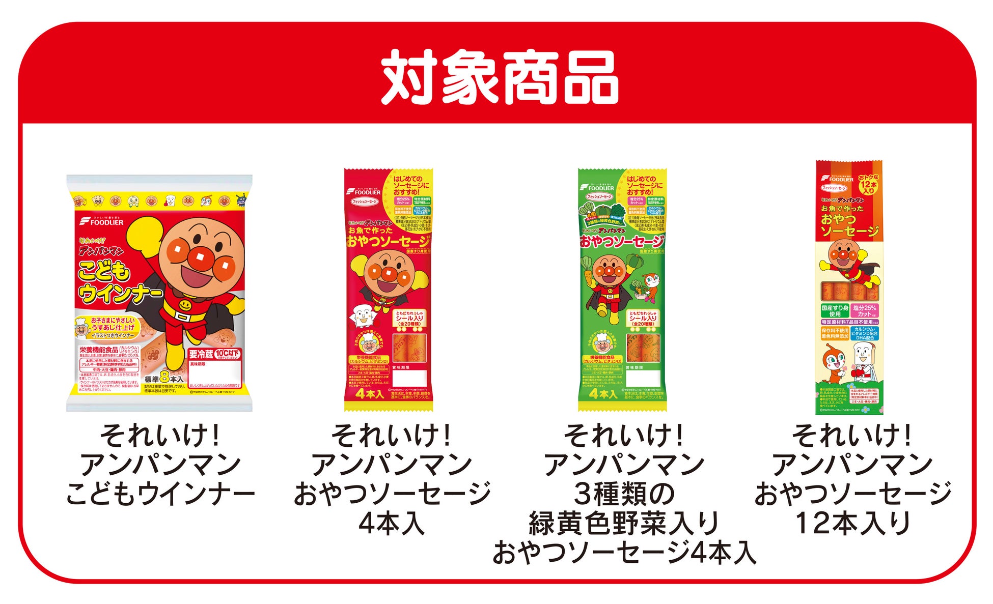 フードリエの『それいけ!アンパンマン』シリーズは、はじめてソーセージを食べる小さなお子さまのために、やさしい味に仕上げています。