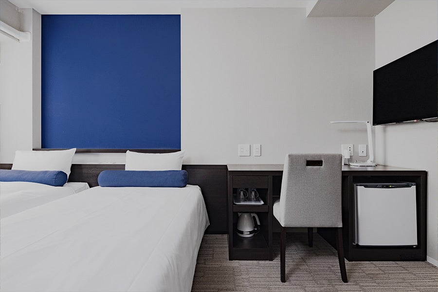 温かい雰囲気のルームデザインを基調とし、コンパクトながらいずれのゲストルームもバス、トイレは独立し、機能的で洗練された空間をご提供します。ツインルーム、シングルルームと併せて全48室となり、ビジネスや観光における個人の滞在から団体旅行の需要まで対応できる環境を整備しています。