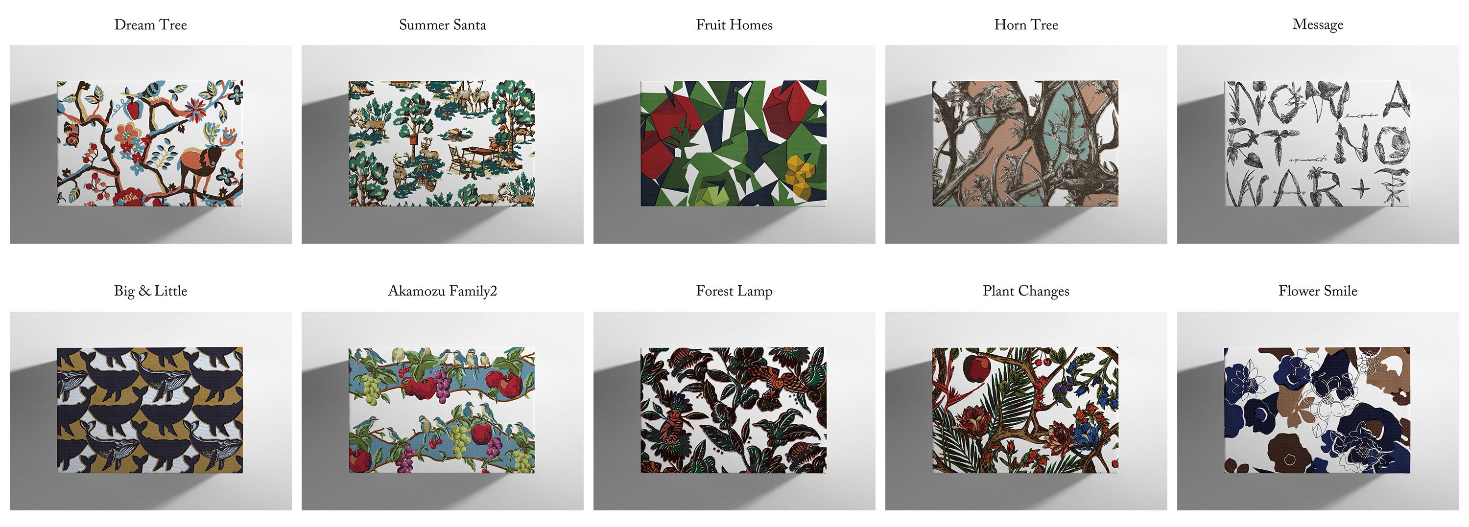 10種のグラフィックには「自然との調和の心地よさ」を軸に一つひとつ異なるメッセージが込められ、環境破壊により絶滅危惧に瀕した動植物がテキスタイルグラフィックならではの暖かみのあるタッチで描かれています。「nowartt」を象徴するタイムレスなデザインと色使いは、幅広いインテリアのスタイルに馴染む落ち着いたムードながら、一枚で部屋をぐっと引き立ててくれます。