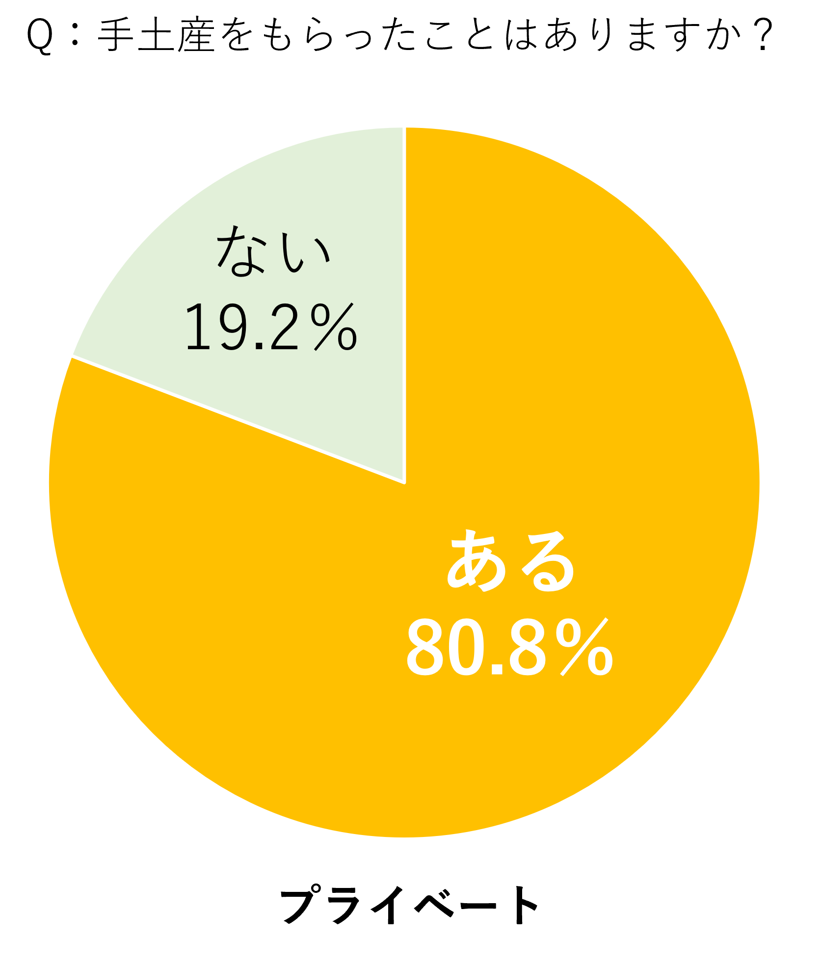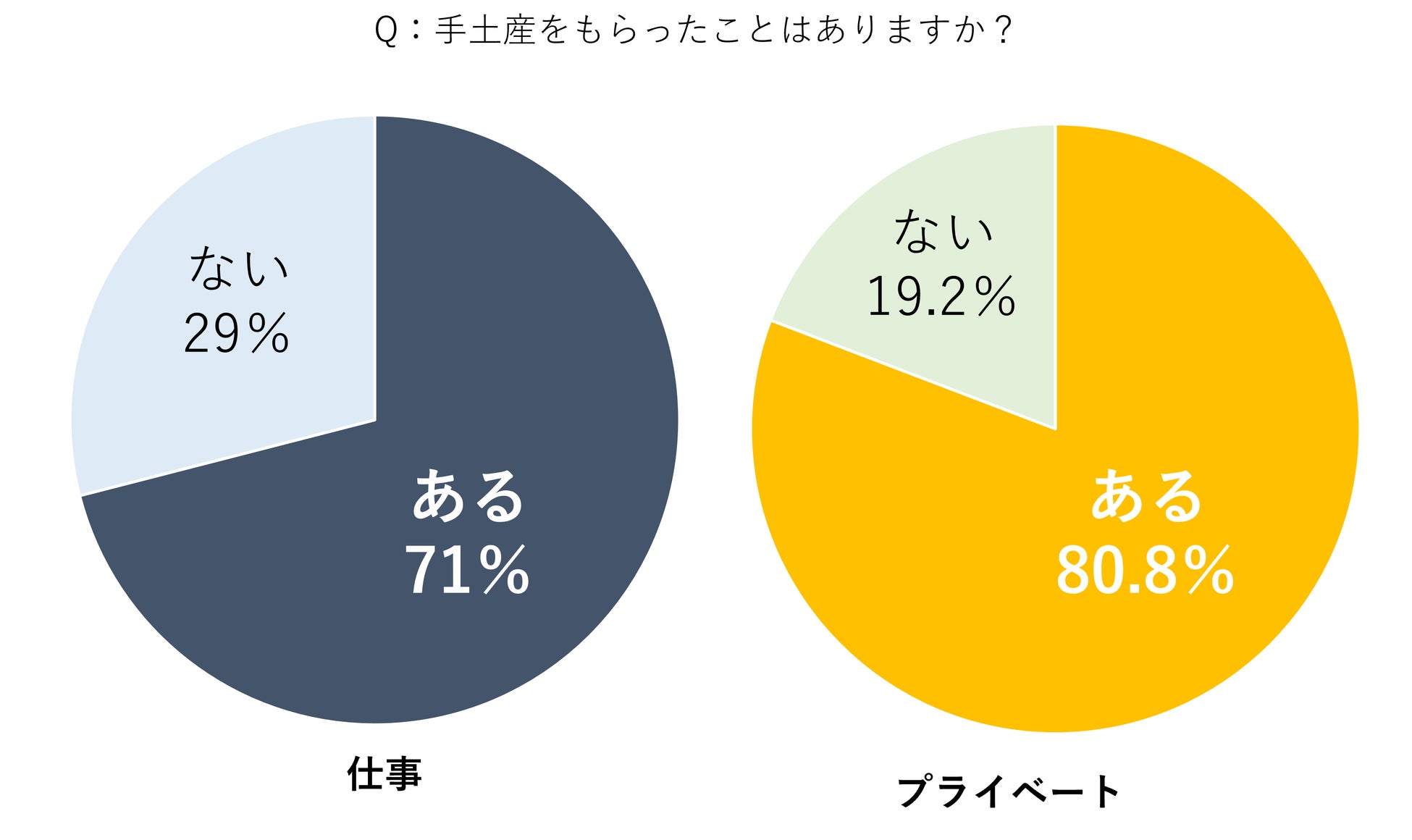 ☑ 仕事・プライベートで手土産をもらったことがある人は、仕事71%、プライベート80.8%。