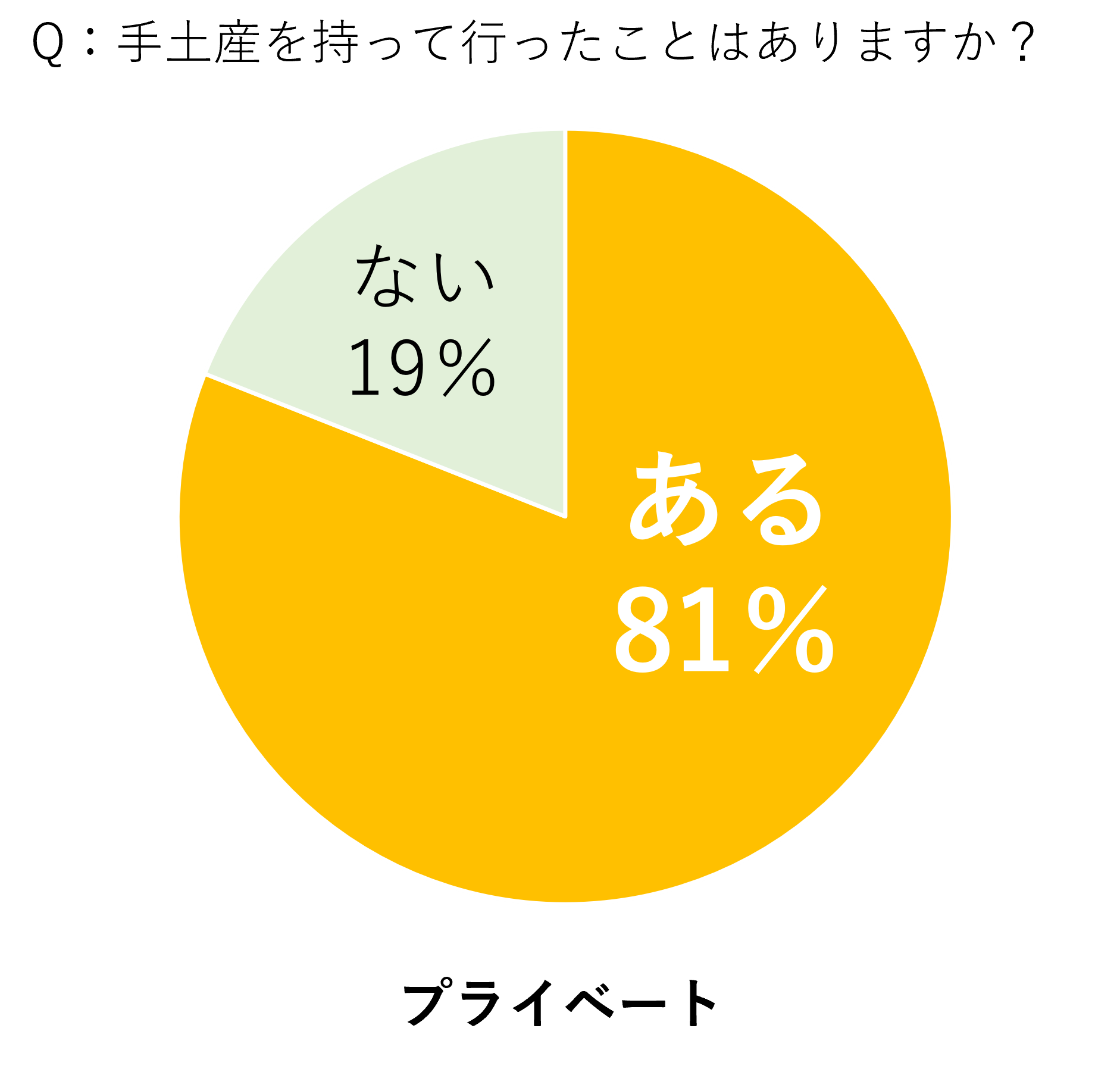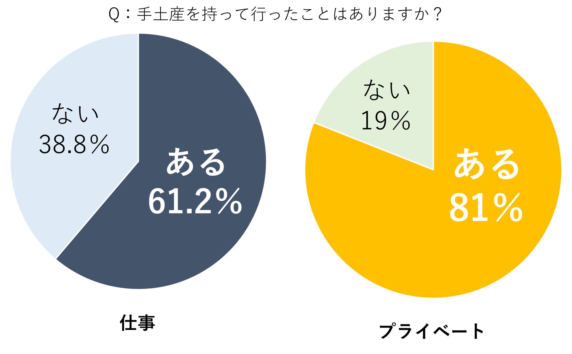 ☑ 仕事・プライベートで手土産を持って行ったことがある人は、仕事61.2%、プライベート81%