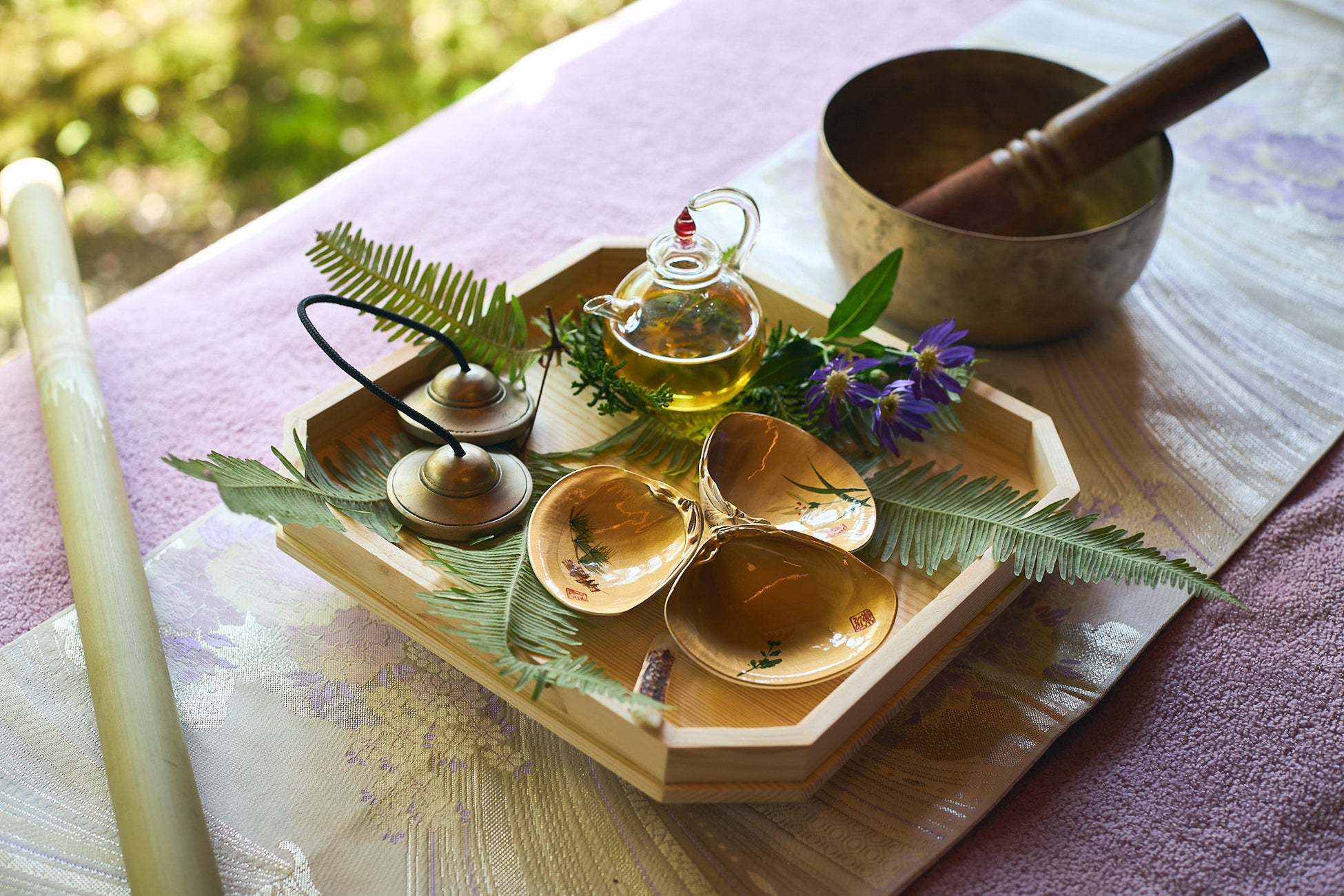 嵐山竹ストレッチ、嵯峨の瞑想、トリートメント、呈茶菓子などご堪能。