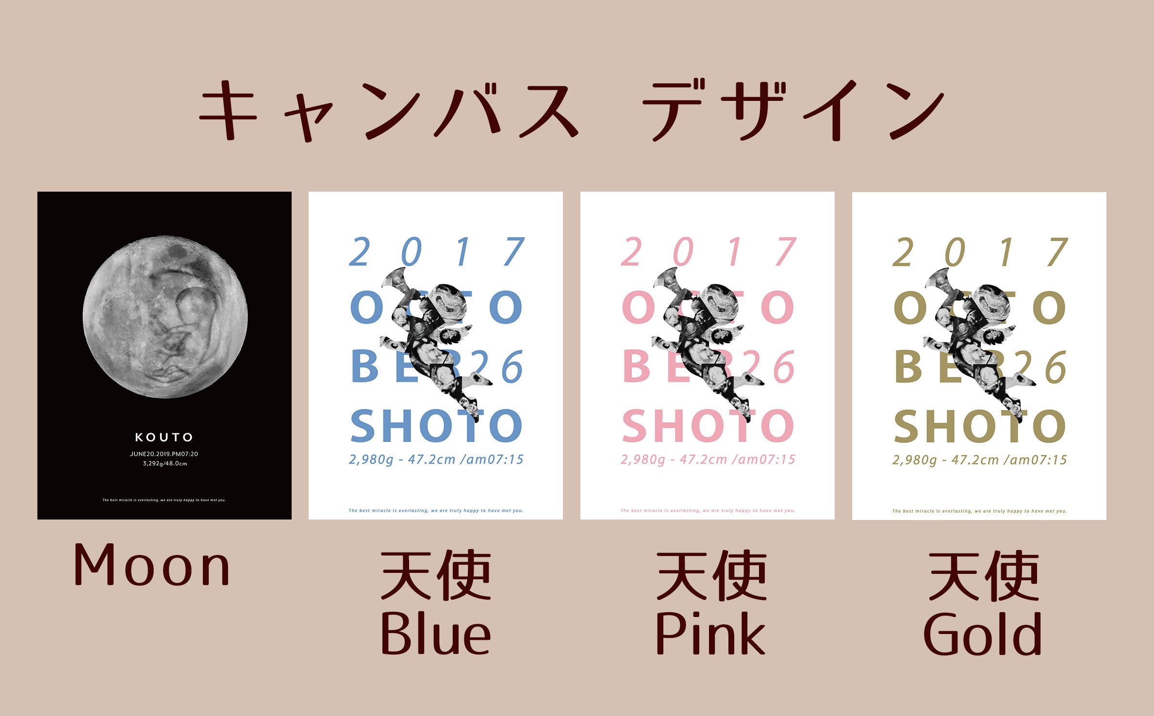 デザイン名:Moonキャンバス、天使Blueキャンバス、天使Pinkキャンバス、天使Goldキャンバス