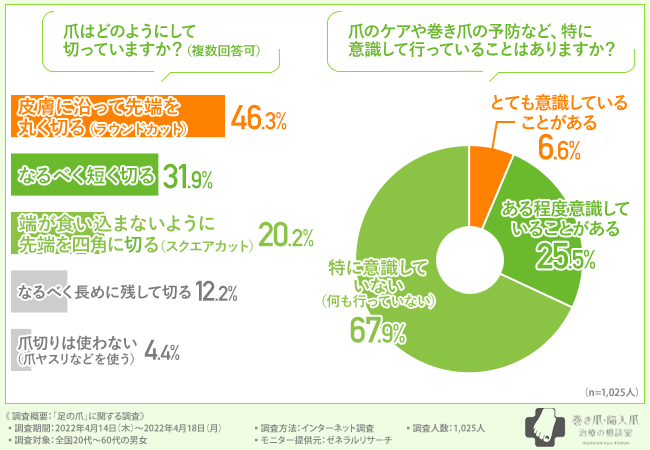 - 巻き爪の原因はご存じ?ケアを意識している割合とは?