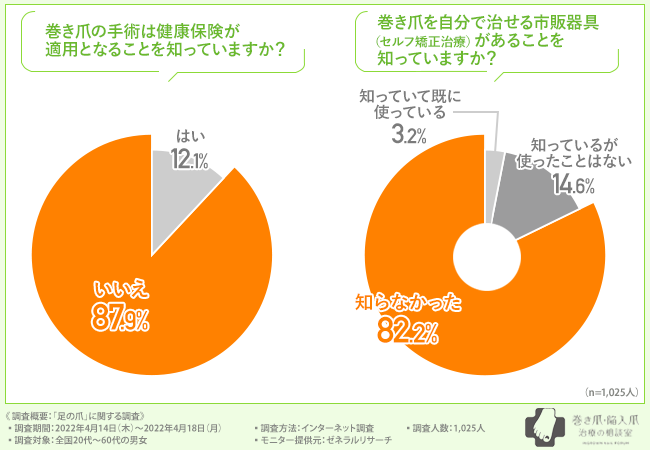 巻き爪の手術に健康保険が適用されることを知らない方が、多数派となっています。