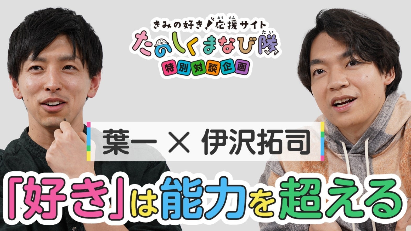 小学生~高校生に向けに授業動画を配信しているYouTuberの葉一さんと、テレビでも活躍中の株式会社QuizKnock CEO 伊沢拓司さんが、「『好き』から始まる学び」について対談しました。