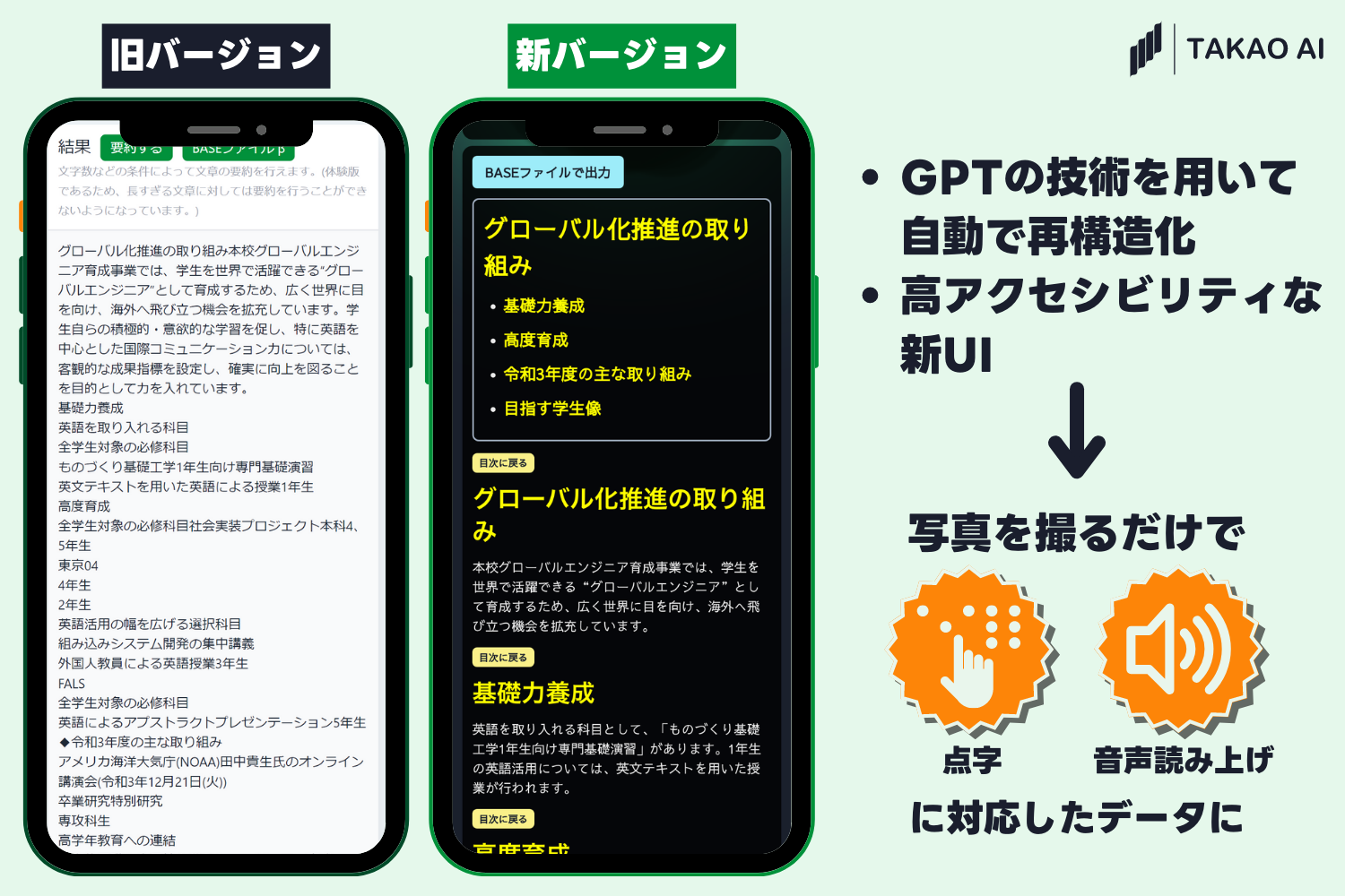 高専発ベンチャー企業 TAKAO AI、OpenAI社/ChatGPTの技術を用いた「ドキュメントの視覚障害者対応」エンジンの試用サイトを公開