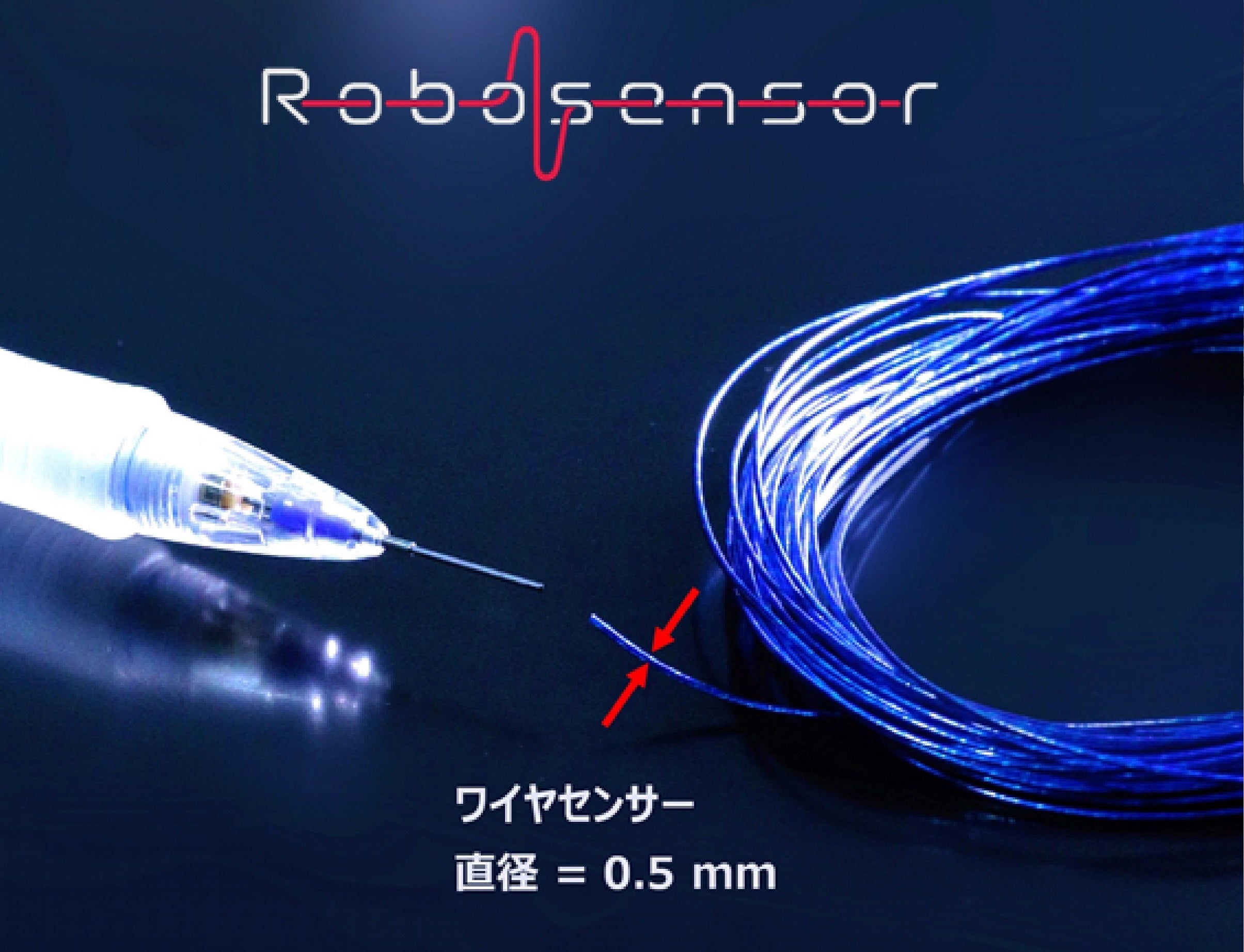 当社独自のノイズレス構造(国内・海外特許登録)をもつ極細高性能なワイヤー状センサーを開発し、僅か直径0.5mmの極細センサーとして世界最高レベルとなる1マイクロニュートン(※-4)の超高感度を実現しています。