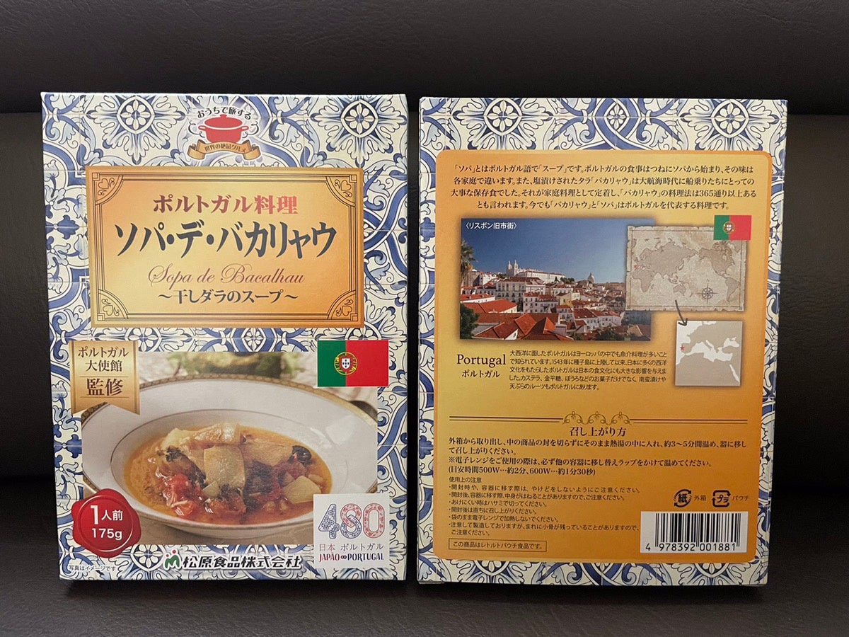 シリーズとしては初でレトルトでもめずらしい魚料理に挑戦しました。本場ポルトガルでも使用される干しダラ「バカリャウ」を水で浸し、骨抜きして使用するという手間がありますが、その分うまみが出て美味しさが増しました。隠し味のコリアンダーがよりスープの味を引き立てます。レトルト食品としてお手頃な価格とは言いにくいのですが、まるでレストランのような品質の料理をご家庭で楽しめます。まさに、おうちで旅するポルトガルの絶品グルメです。