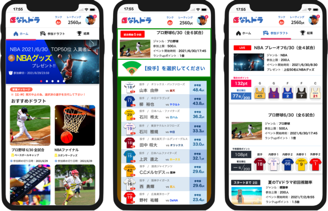 なんドラは、スポーツ・エンタメ・社会・文化など幅広いジャンルを対象に、イベントの中で誰が活躍するかを予想し、自分だけのオールスターチームを作ります。そして、実際のイベントでの各選手の活躍を独自の指標により数値化し、獲得合計ポイントで対戦する新感覚サービスです。