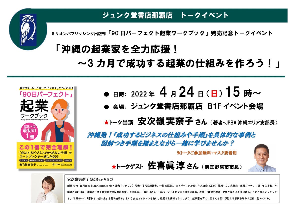 ジュンク堂那覇店トークイベント 沖縄の起業家を全力応援!~3か月で成功する起業の仕組みを作ろう!