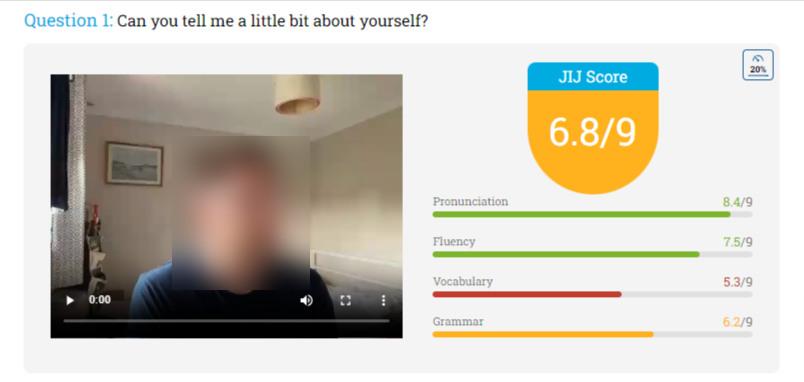 この革新的なシステムは、単なるビデオ履歴書ではありません。求職者は一連の質問にビデオで回答し、その結果が履歴書やその他の応募書類に加えられます。このようにして、英語の文法、発音、語彙、構文などのスコアを計測し、雇用主に提供することができます。